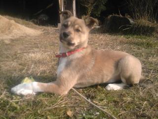 kedama55 2011年2月18日 こまちが我が家にきて2ヶ月半になりました。 先日、1回目の9種ワクチンを接種しました。 体重は7キロです。我が家に来て、約5キロも増えました☆ そして昨日、乳歯が1本抜けているのを発見! 前歯が1本ありません。(笑) すくすくと成長していて、顔つきも体つきも、我が家に来た頃とはだいぶ変わりました。 最初の頃はなかったイモトアヤコさんの眉毛のような模様も出てきて、 いつも【困った顔】をしています。(笑) こまちは足がとても長いような気がします! とにかく元気で、いつもピョンピョン跳ねています☆ 先日20センチの積雪があったときは、とても大喜びで走りまわっていました! お座りはできるようになりましたが、これからもっと躾をしていかなければなりません。 まだまだ落ち着きがないので、根気が必要となりそうです。(笑) 写真は最近のこまちです。外では砂山に上り、滑り下りるのが楽しいみたいです! ボールが大好きで、お散歩のときはずっとくわえて歩いています。 きっと先住犬の真似をしているのだと…。 (先住犬はレトリバーなので、何かをくわえているのが好きなのです。) 【 Y 様より】