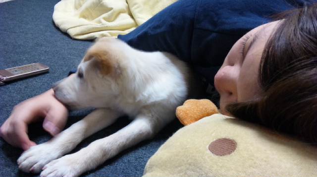 たんこぶ。 2010年12月30日 こんばんは、 緊張したけど頑張って電車に乗ってやっとやっと着きました! 昨日から緊張して何も食べていなかったみたいでしたが ちょっとづつ慣れてきてご飯も食べてお水も飲みました。 今はこたつで寝ころぶお姉ちゃんが一番気が合うようで となりにもぐりこんだりかみかみしたり遊んでいます。 名まえは「きなこ」になりました。
