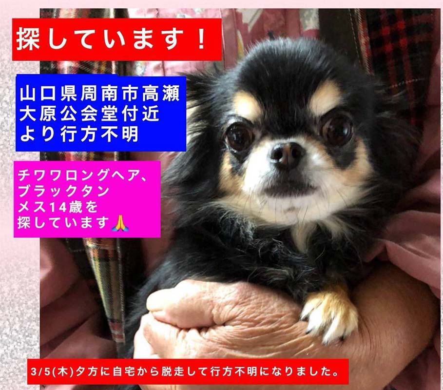 3/5(木) 夕方に自宅から脱走して行方不明になりました。