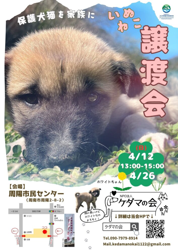 譲渡会の問い合わせはケダマの会へお願いします。➡090-7979-8914(ケダマの会・橋本)