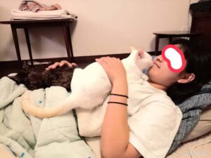 性格、特徴等   すりすりごろごろ甘えん坊くんです。とっても可愛いい男の子です。穏やかな子です。目がブルー柄が淡いかわいい色です。