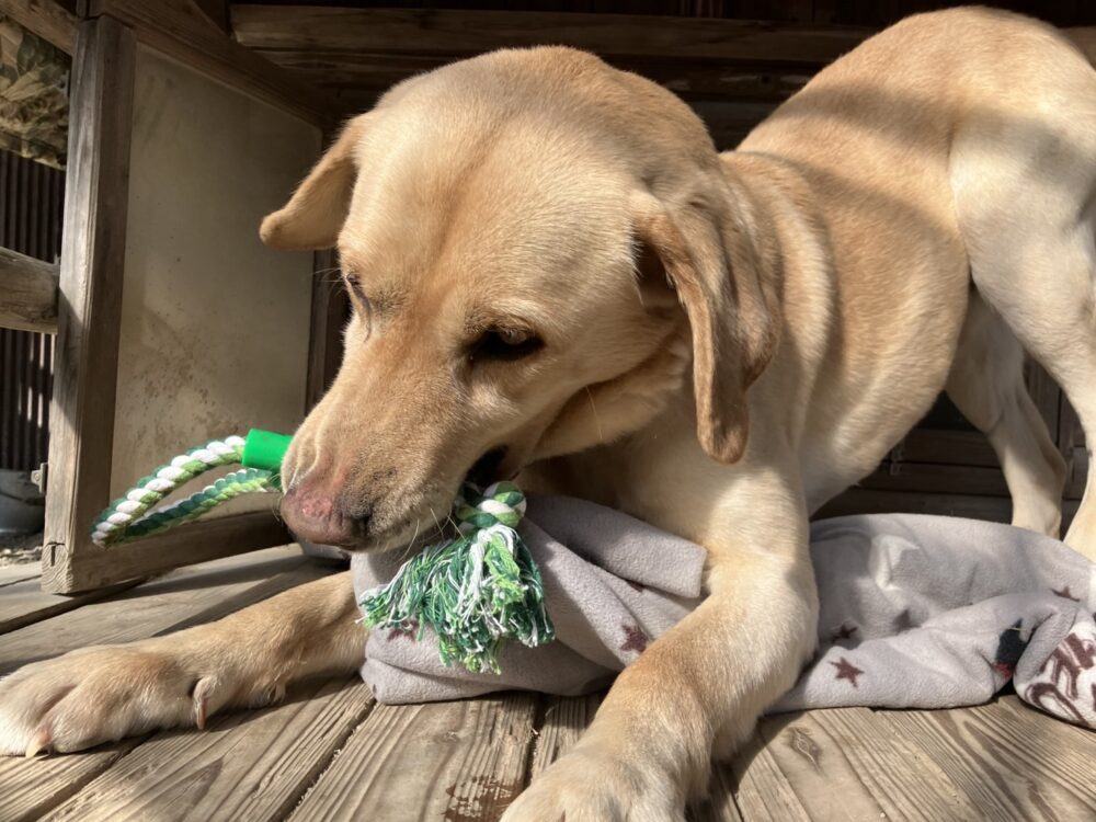 とにかく人懐っこく社交的、ムードメーカー的な男の子です。レトリーブ遊びやロープの引っぱり合いっこなど、身体を動かす遊びが大好き。水遊びも好きだそうです。