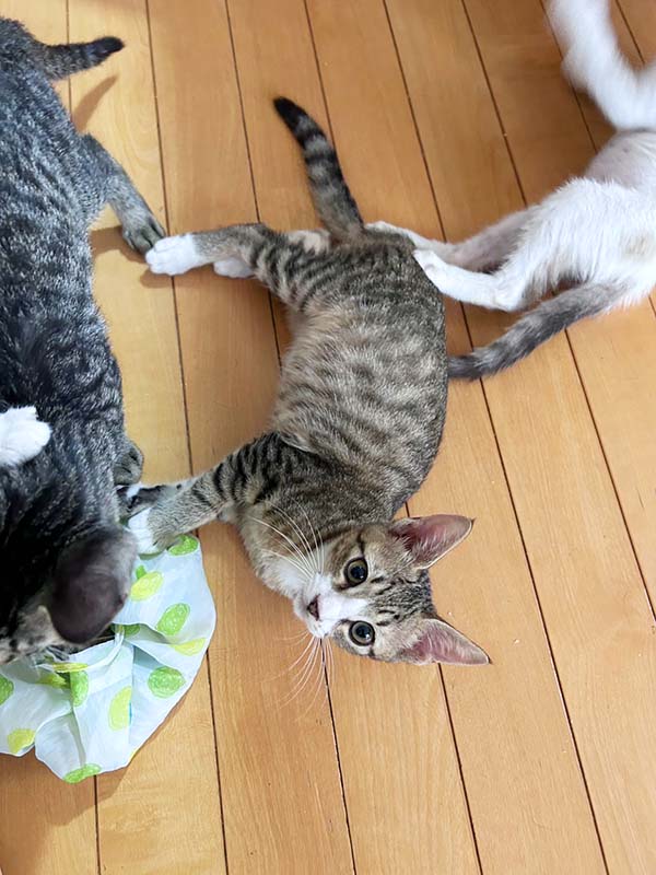 ・性格、特徴等 2匹で仲良く元気に過ごしています。ウェットフードやカリカリも少しずつ食べるようになってきました。