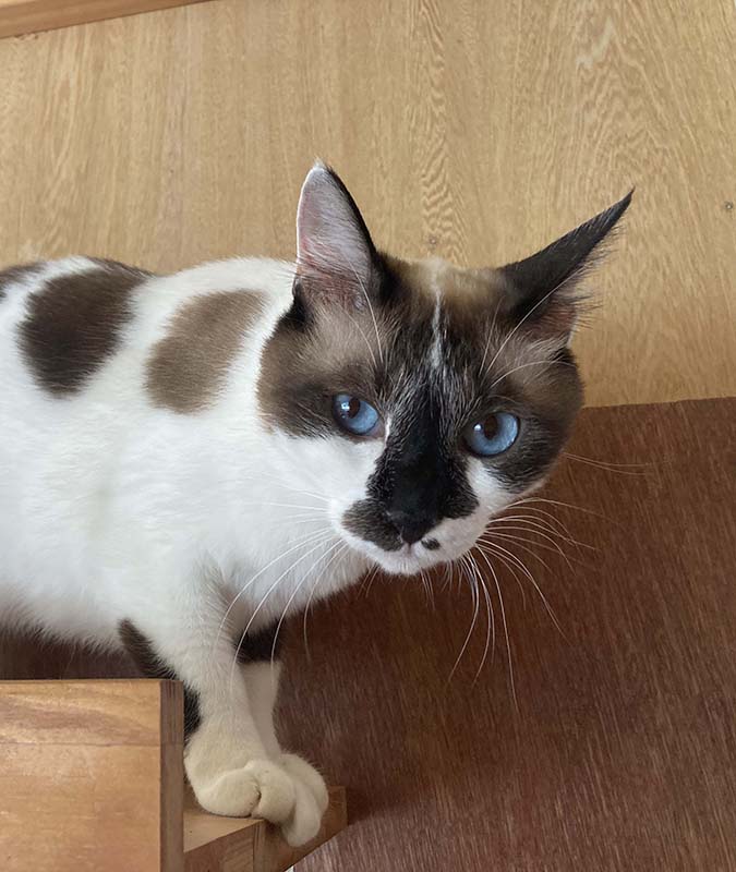 ・性格、特徴等 シャイな子で最初は距離をとりますが、慣れると撫でて欲しいと転がってお腹をみせてきます。小柄。姉妹猫と仲良しです。