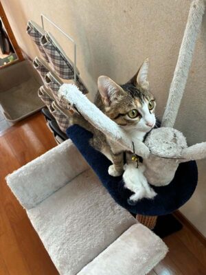 ・性格、特徴等 なんでもおもちゃになるぐらい遊び好きで、先住猫とも取っ組み合いをしたり、走り回ったり、とても元気いっぱいな子です。成長期らしく食欲旺盛で何度でもねだってきます。おトイレについても、ケージに入れてすぐに覚えてくれました。最近は警戒心を覚えてきたようです。