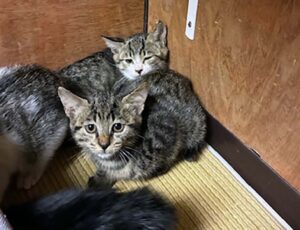 ・保護経緯 高齢で経済的に困窮されている方が、不妊手術をせず、出入り自由の環境で飼育し繁殖させた為。母猫は手術予定。
