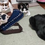 びいは高いところが好きみたいで、食器棚の上も制覇しました。だあは登れず見ているだけでした。