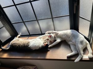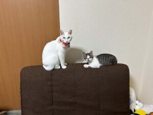 今は、2年前に岡山県内の保護団体から迎え入れた男の子と、仲良く…いや、適度な距離感で2匹、一緒に過ごしています☺️