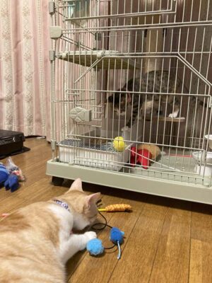 クウォルちゃんは相変わらず、遠巻きに眺めているだけなのですが、仲良くなるのに時間がかかる と思います。