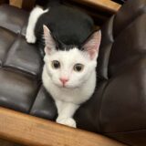 散歩から帰ってきたら・・・私のくつろぎ場所に外猫のグレッグが!