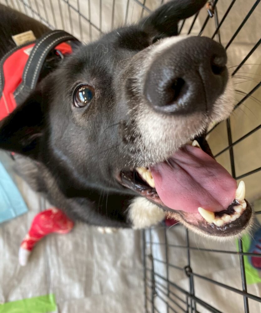・性格、特徴等:黒の毛並みに白ソックスと白いヨダレ掛けを掛けているような模様の子です。毛はモフモフです。好奇心旺盛で元気いっぱい!人見知りもなく誰にでもフレンドリー。猫さんに対しても紳士です。